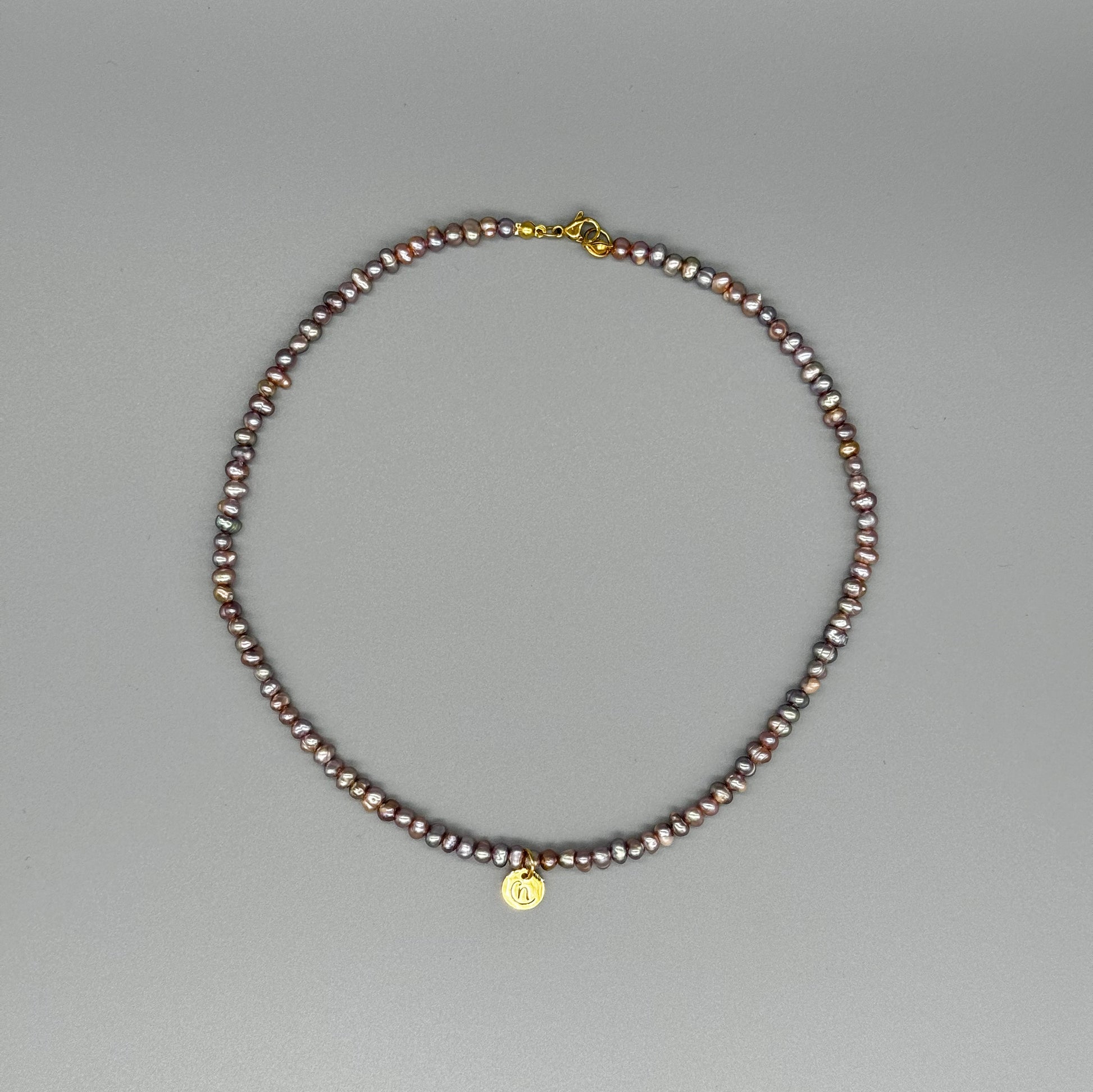 Колие, което съчетава изтънчеността на естествените перли в нежни тъмно розови и лилави нюанси, като омагьосано сияние под лунната светлина. Това бижу е нежно и мистично, събуждащо страст и вдъхновение, перфектно за всеки, който иска да носи частица от нощното небе близо до сърцето си.