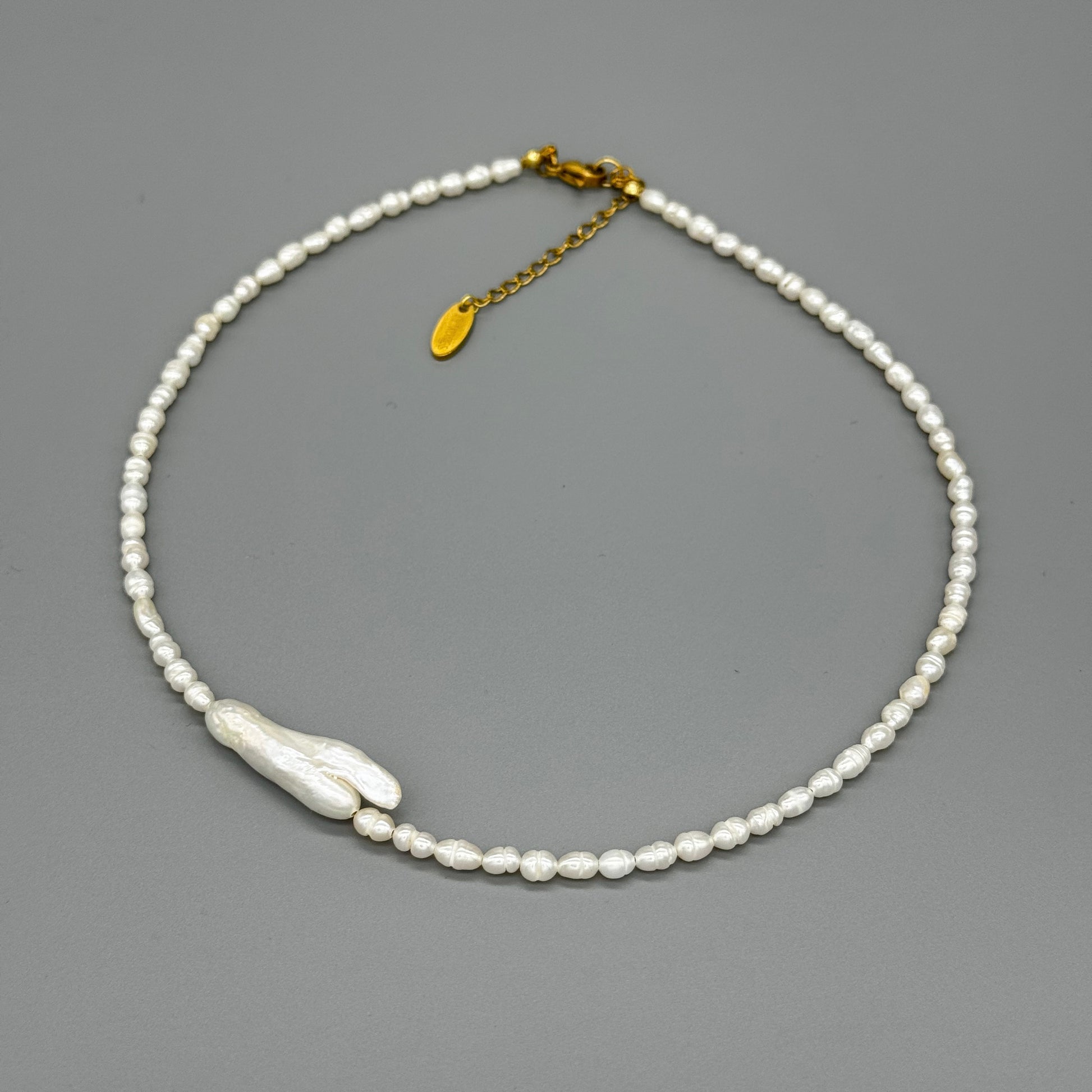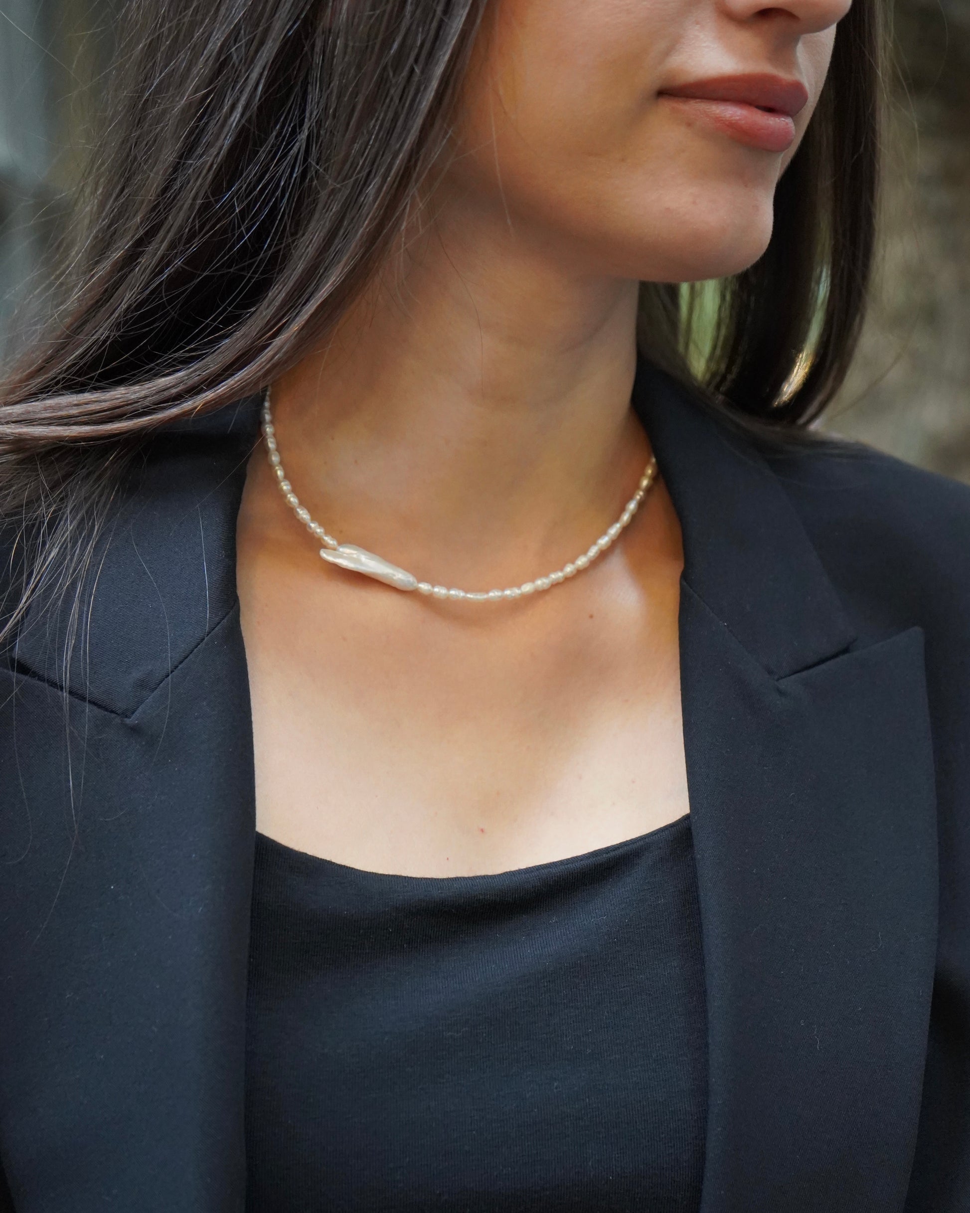 Вдъхновено от естествената красота на несъвършенството, това колие с акцентна барокова перла е съчетание на класа и индивидуалност. Уникалната му форма превръща всяко бижу в едно единствено по рода си произведение – със своя характер, текстура и блясък.