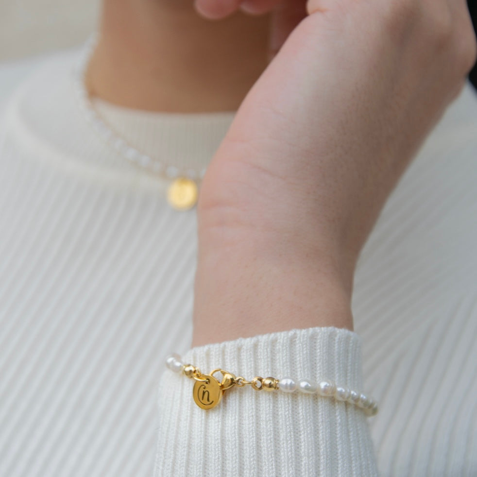 Ръчно изработена от 4 мм сладководни оризови перли, тази гривна придава деликатна и изтънчена визия. Закопчалката и елементите от неръждаема стомана осигуряват както издръжливост, така и модерна елегантност, превръщайки я в перфектен аксесоар както за всекидневието, така и за специални поводи.