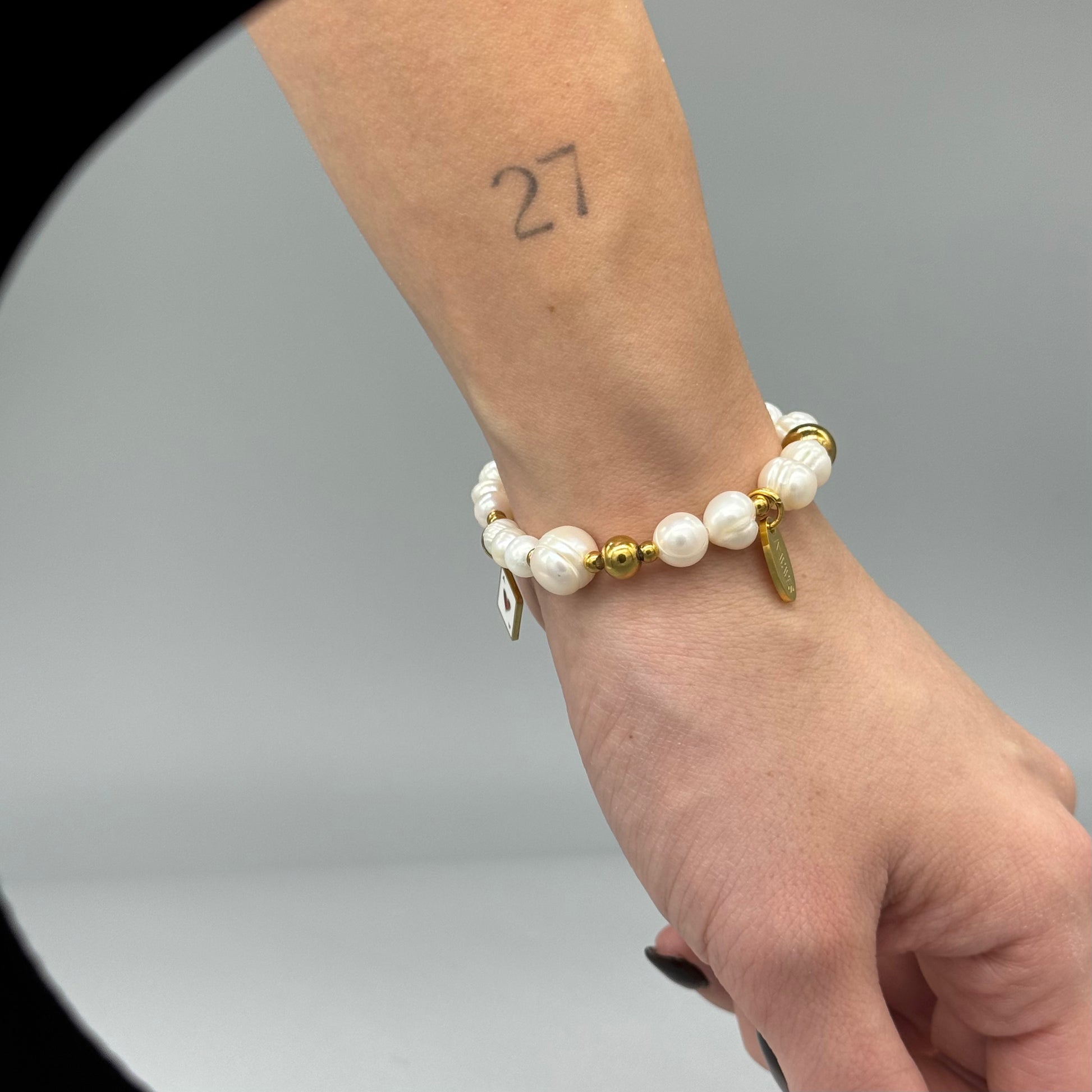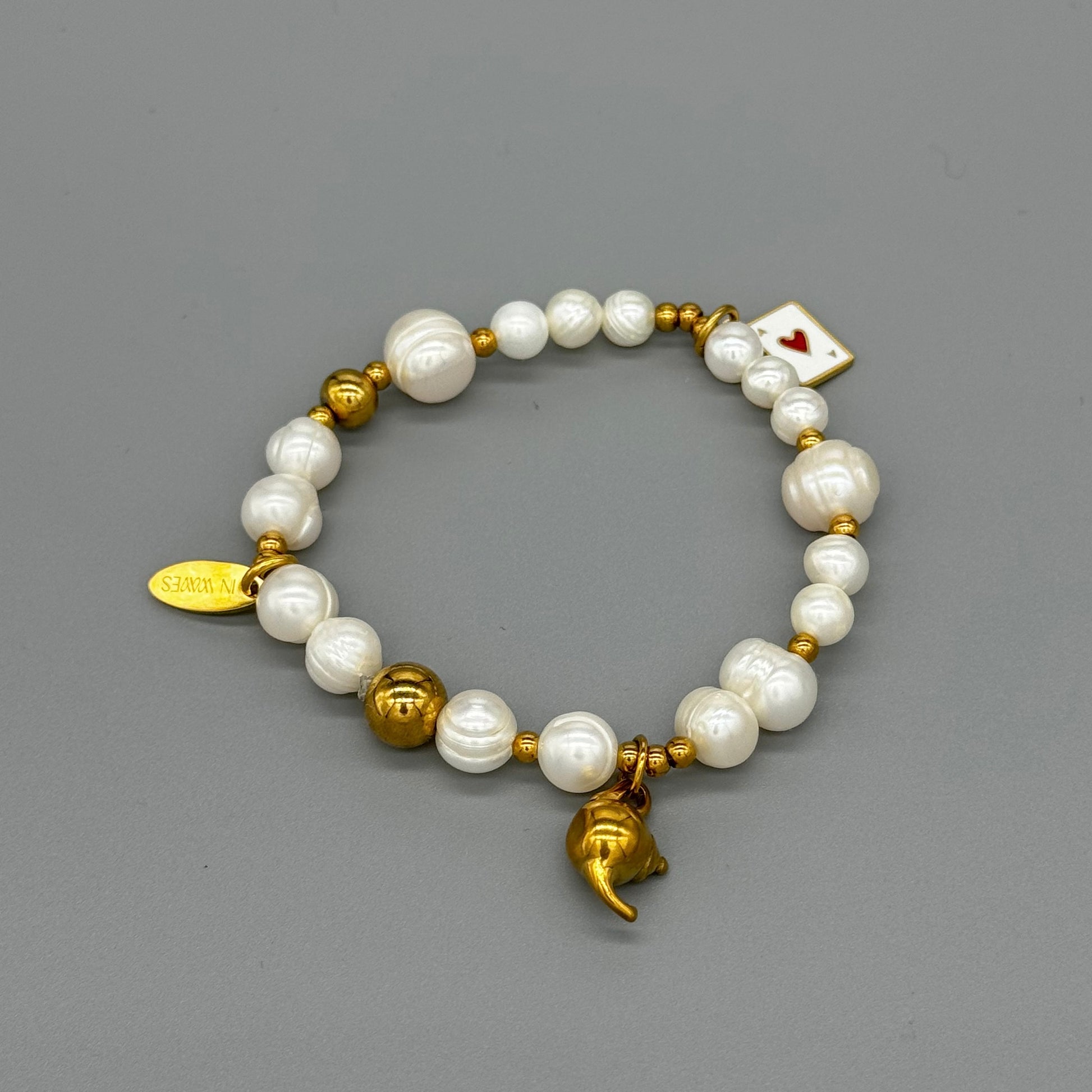 Гривна Wonderland комбинира блясъка на неръждаемата стомана с нежността на естествени перли. Нестандартните акценти напомнят, че в ежедневието ни винаги има място за малко магия.